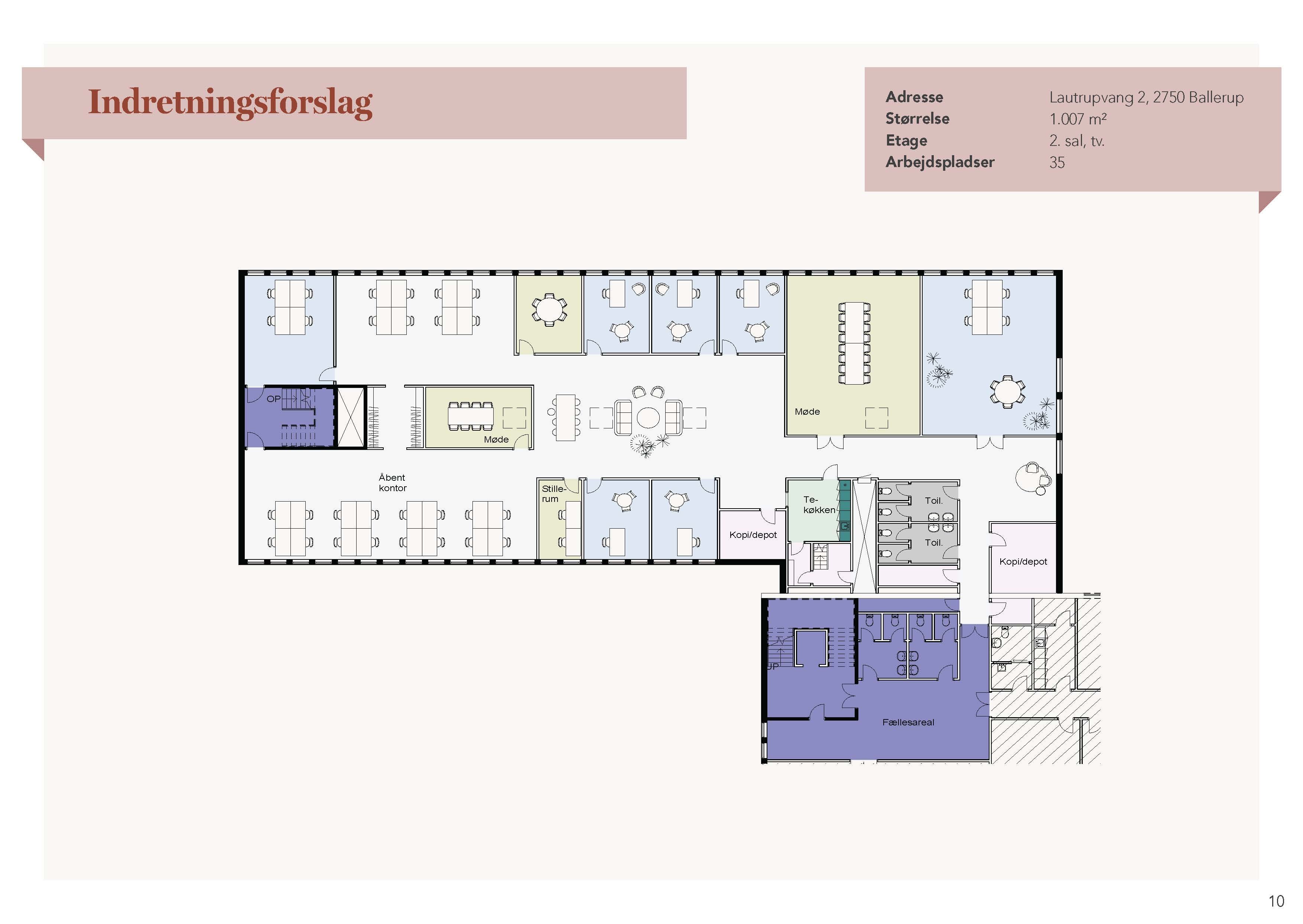Åbent kontor på 5. sal med godt naturligt lysindfald