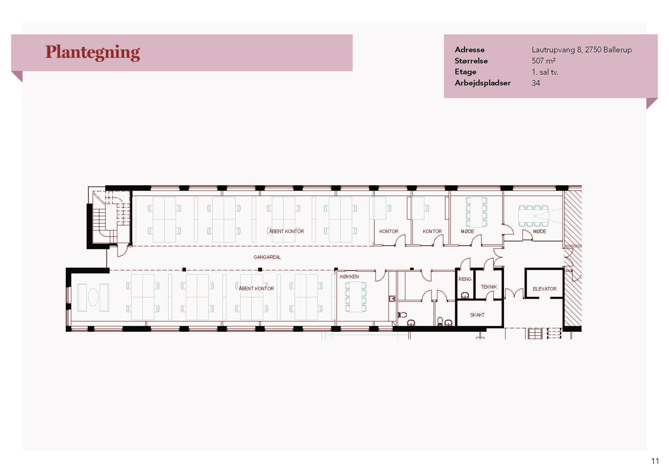 Lyst kontor med fleksible indretningsmuligheder