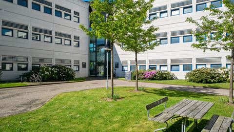 Velkommen til Slotmarken – et inspirerende kontormiljø med fælles kantine, gratis parkering og moderne kontorlokaler i grønne omgivelser.