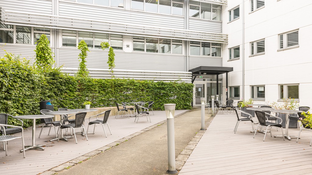 I huset finns konferensanläggning, café och libanesisk lunchrestaurang. På gångavstånd ligger hotell, bank, frisör och livsmedelsbutik. Stor parkeringsplats precis intill byggnaden samt närliggande garageplatser. Cykelparkering under tak samt laddningsstationer för elbilar.