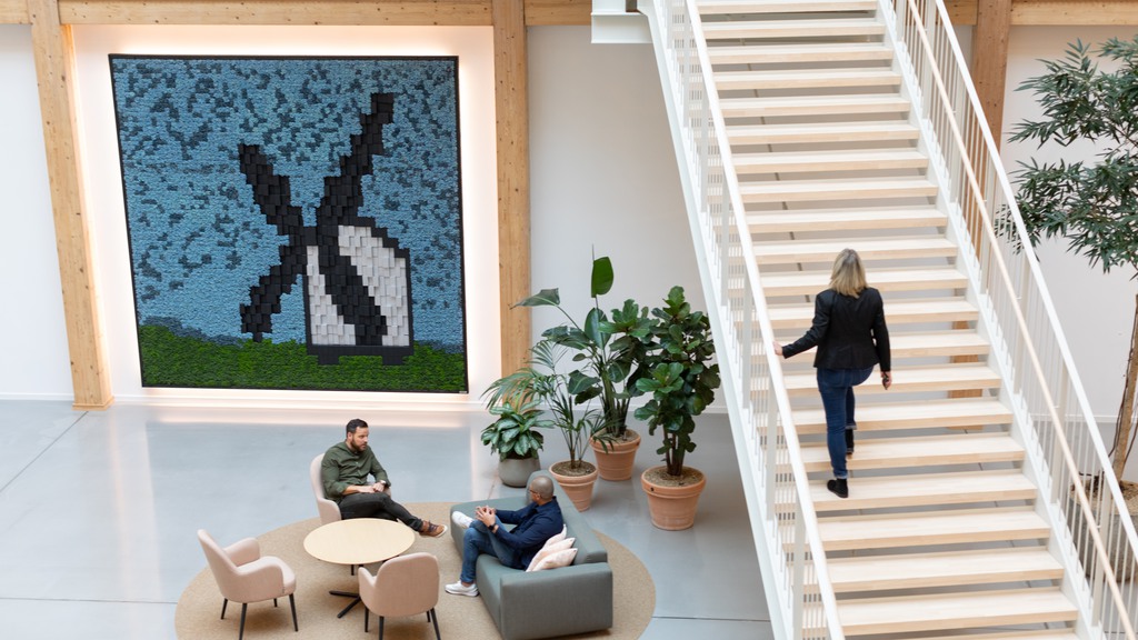 Ikonisk byggnad med stark identitet och hög kvalitet i uttryck och detaljer. Byggnaden är trippelcertifierad med fokus på människans välmående.