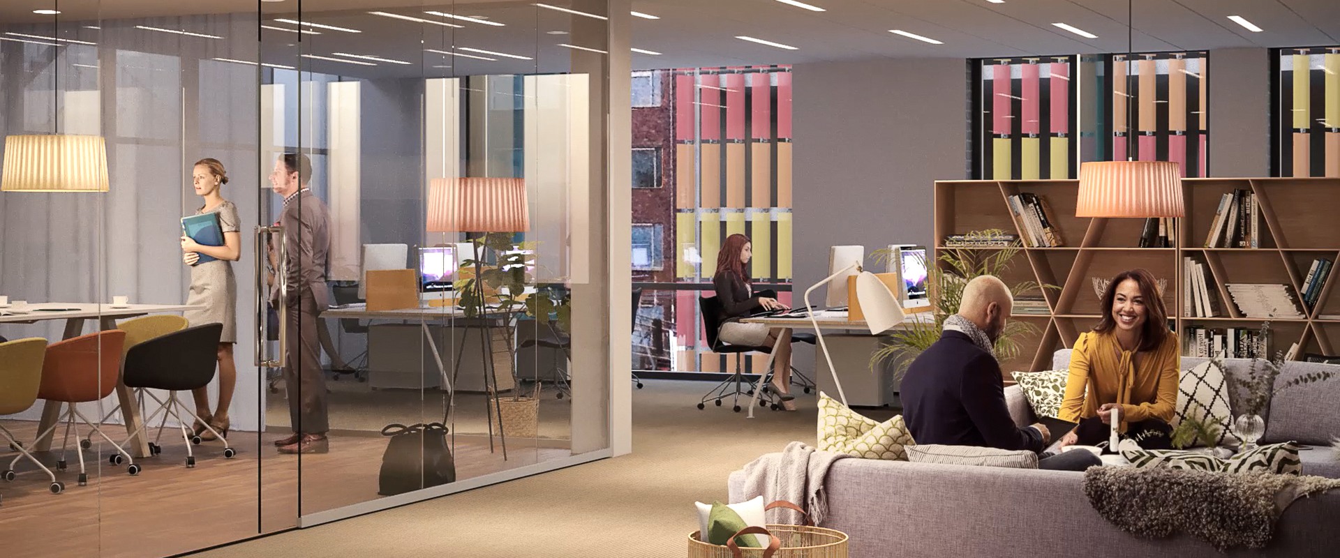 Sex våningar i mörkt tegelskifferplattor och trä, med välkomnande entréer och fina ljusöppningar för behagligt dagsljus. Med ovanligt mycket trä för en varm och välkomnande känsla varje gång du kliver in.