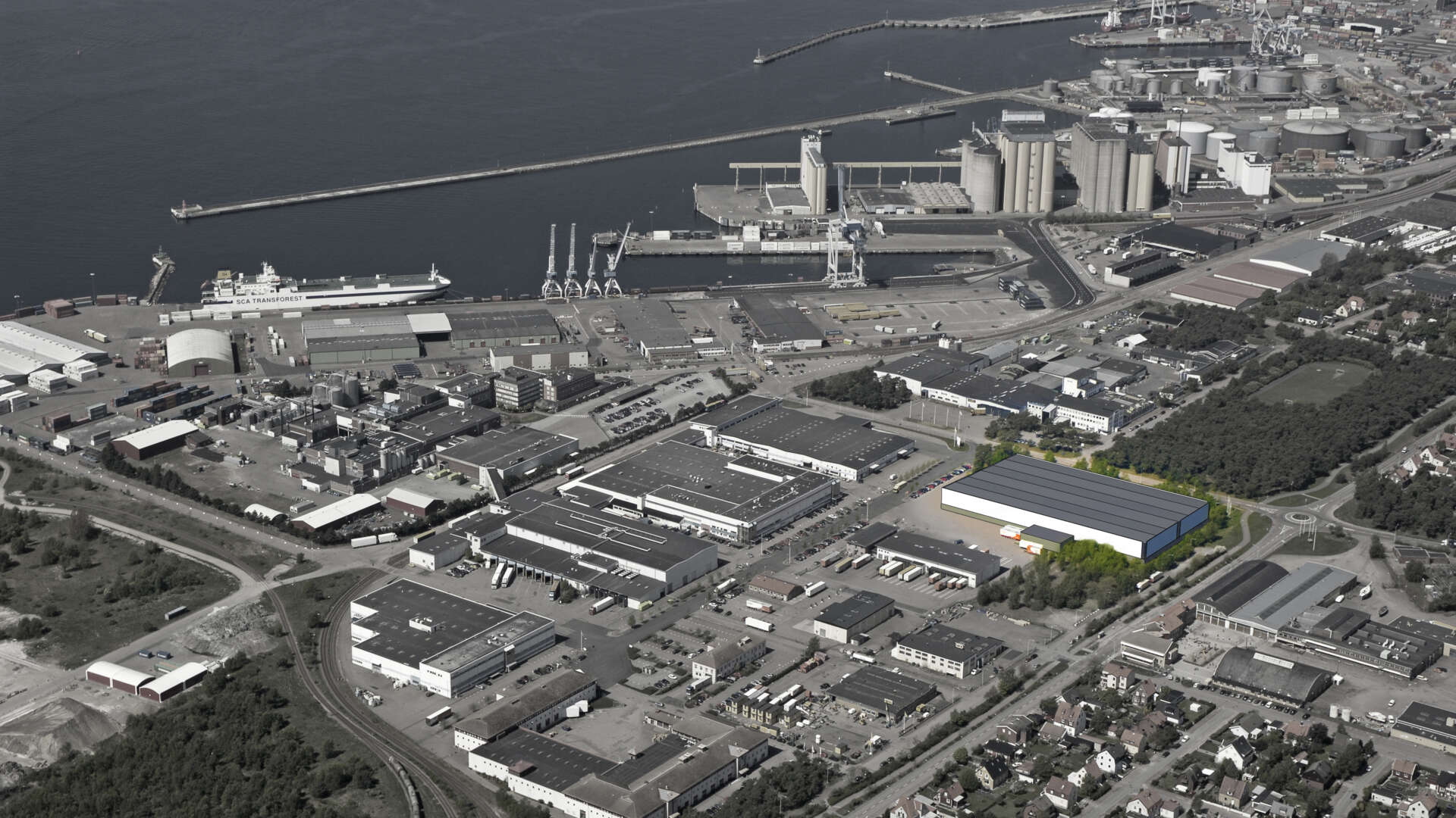 På ett optimalt logistikläge i Hamncity i södra Helsingborg har vi utvecklat och uppfört en modern logistikanläggning åt Springhill Textile AB, med alla förutsättningar för ett smidigt och effektivt flöde. Läget erbjuder direkt närhet till Sveriges näst största containerhamn och snabb access till de stora europavägarna.