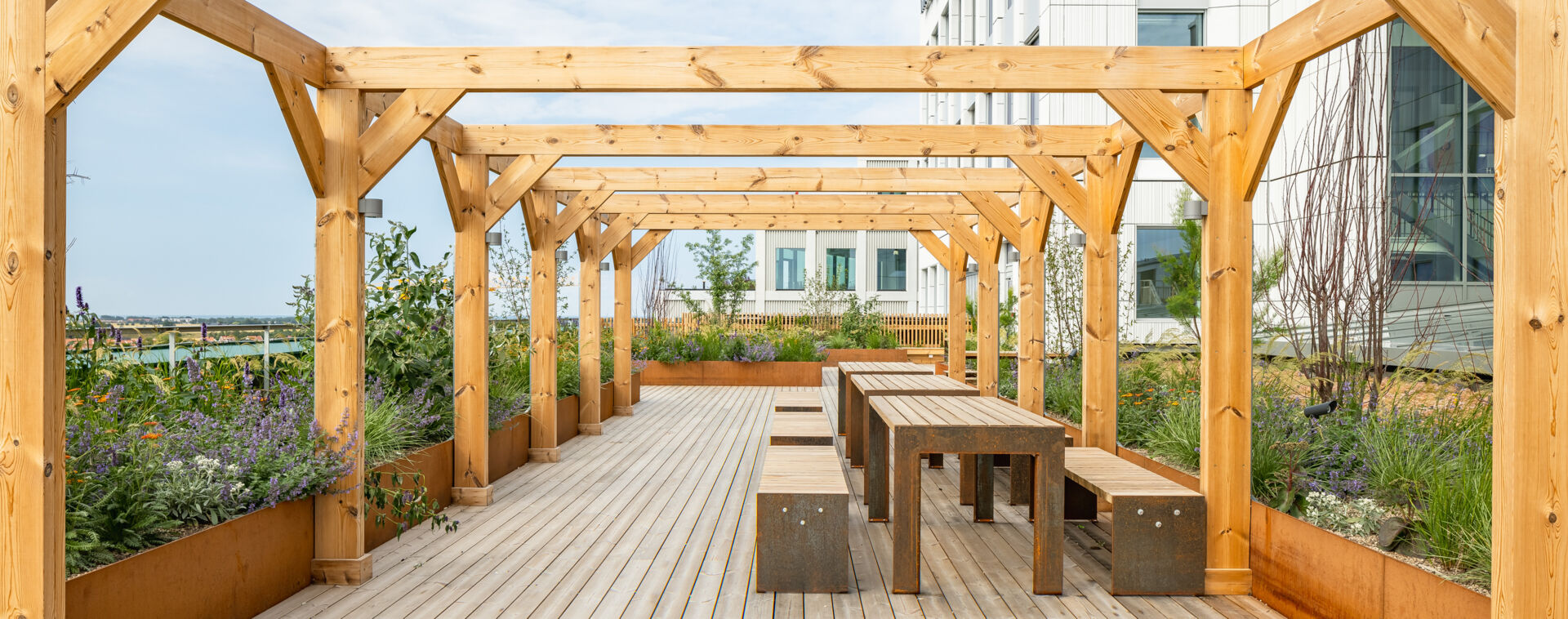 För den som hellre nyttjar takterrassen för en paus och återhämtning finns det självklart även rum för avkoppling på denna rofyllda och ombonade plats. I direkt anslutning till många av kontoren skapar vi dessutom balkonger, perfekta för möten eller fika med teamet.
